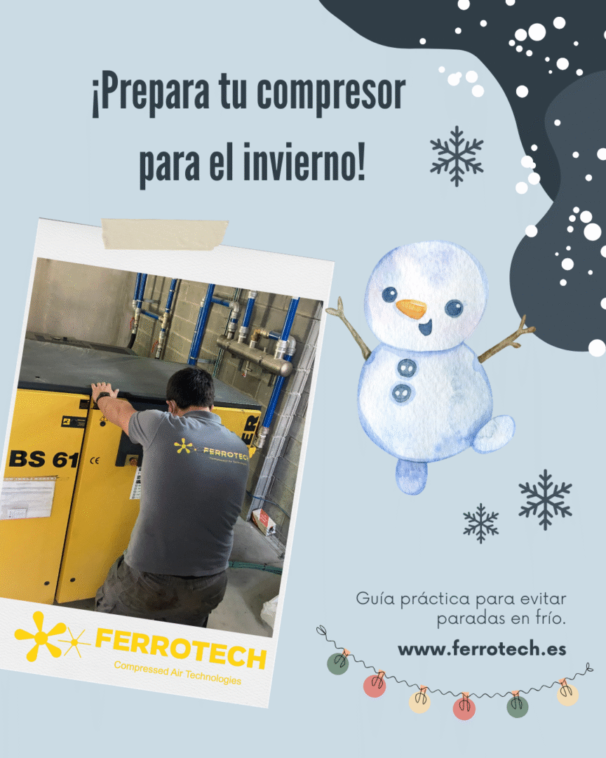 Por eso, organizar un mantenimiento de compresores antes del invierno es muy recomendable y desde Ferrotech creemos que es una de las formas más efectivas de evitar paradas y sus consecuentes pérdidas de producción y costes inncesarios.